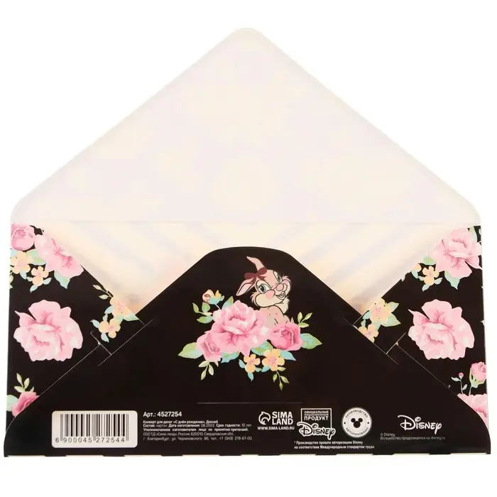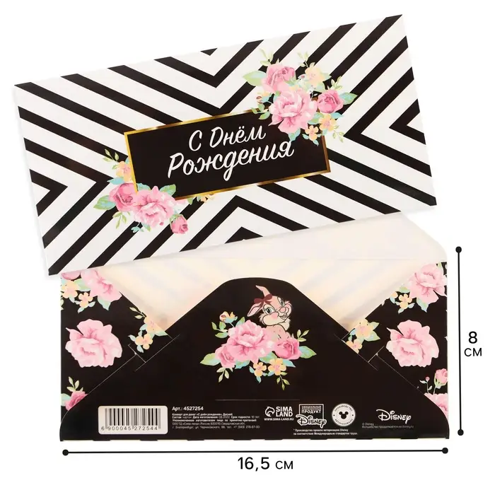Конверт для денег, 16.5 х 8 см «С днём Рождения», Бэмби
