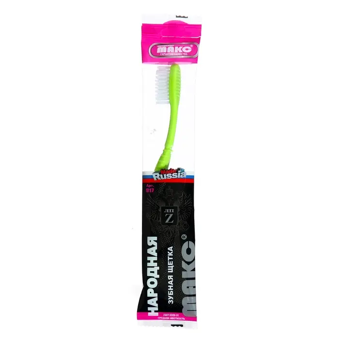 Щетина изготовлена из высококачественного нейлона, который обеспечивает мягкое и эффективное очищение зубов.