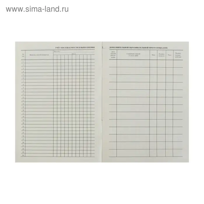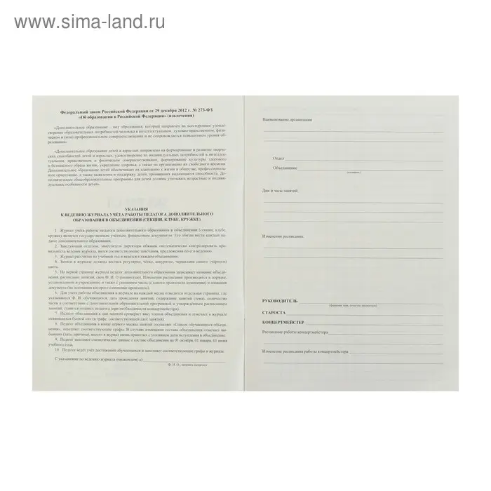 Журнал учёта работы педагога дополнительного образования в объединении (секции, клубе, кружке) А4, 20 листов, обложка офсет 120 г/м², блок писчая бумага 60 г/м²