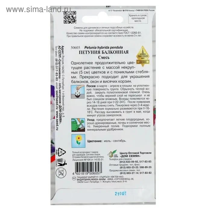 Семена цветов Петуния "Балконная", 210 шт