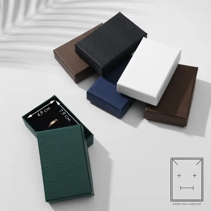 С нашими прекрасными коробочками любой подарок станет еще лучше и ярче. Футляр выполнен из прочного плотного картона. Оптимальный размер коробки 5*8см позволяет разместить разнообразные виды ювелирных изделий – от сережек до колье. Внутри каждой коробочки с крышкой есть чёрная бархатная подложка. С помощью специальных прорезей на подушечке можно аккуратно разместить и зафиксировать цепочки, гвоздики и перстни. А если убрать подложку, упаковка подойдет даже для часов с мягким плоским ремешком или на цепи.