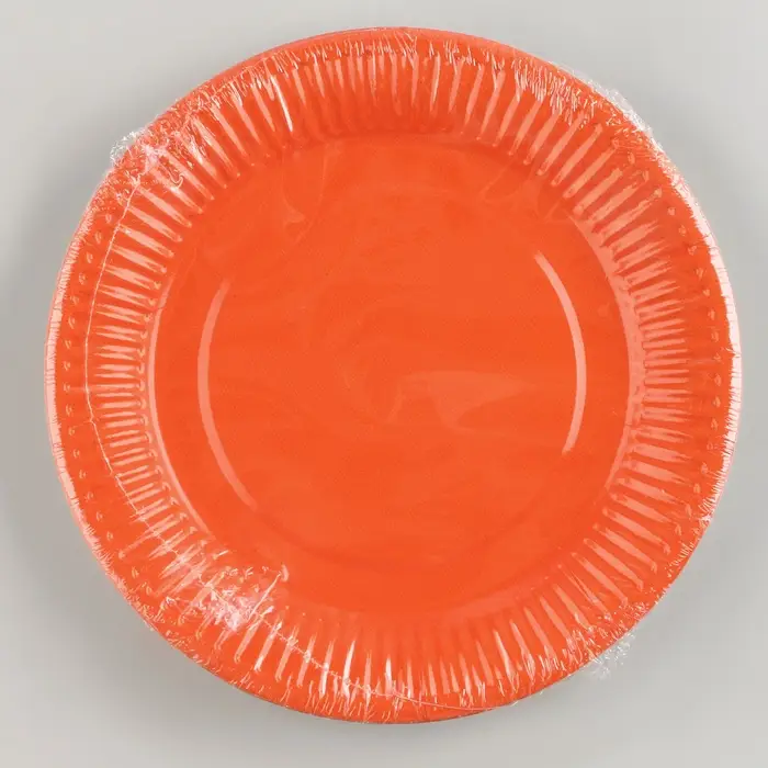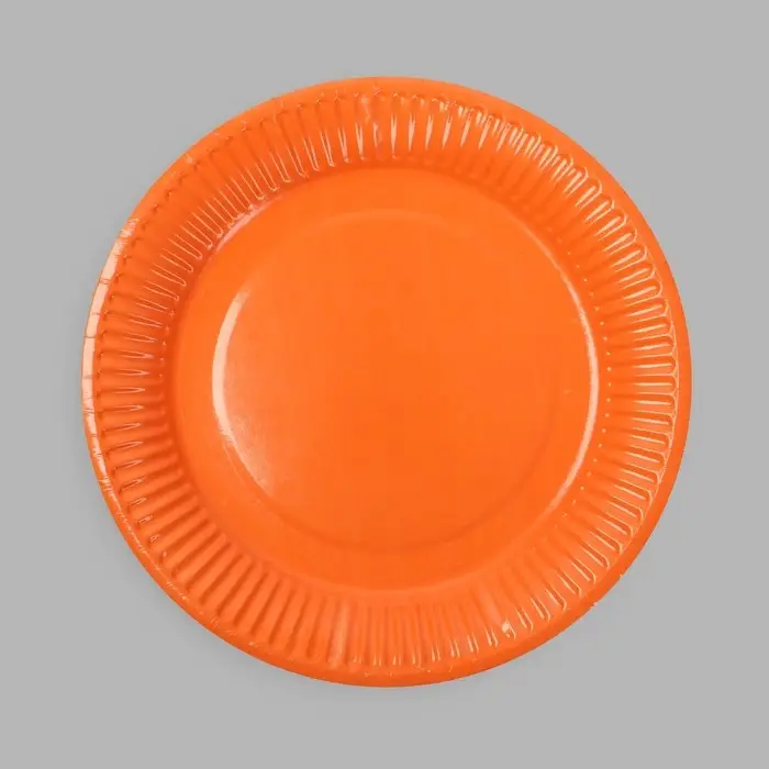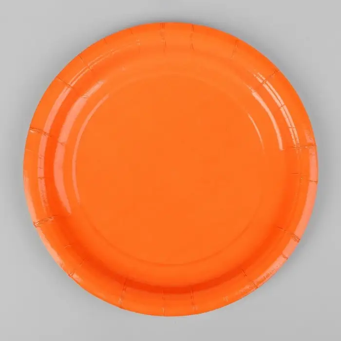 Тарелка одноразовая бумажная однотонная, оранжевая