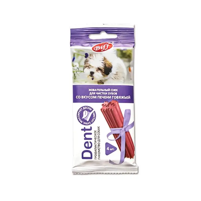 Biff DENT жевательные снеки - это профилактическое лакомство для собак, которое благодаря специально разработанной форме и текстуре, учитывает все особенности мелких пород. Рекомендованы для снятия мягкого зубного налета.