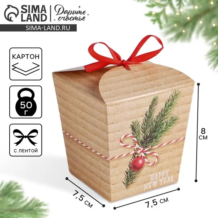 Бонбоньерка новогодняя «Happy new year», 7,5 х 8 х 7,5 см, Новый год