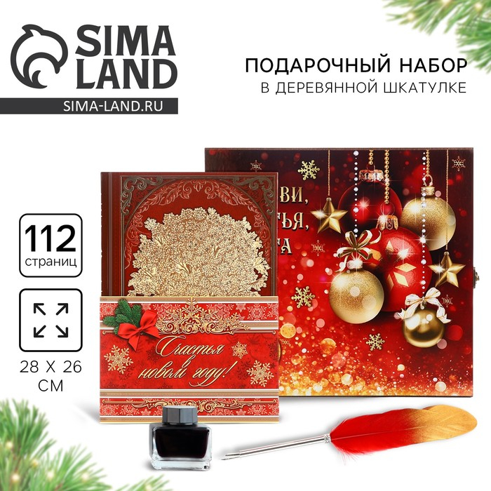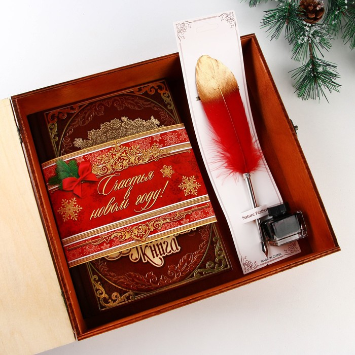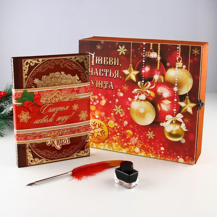 Родословная новогодняя книга с пером в шкатулке «Новый год: Любви, счастья и уюта», 26 х 8 х 27 см, набор