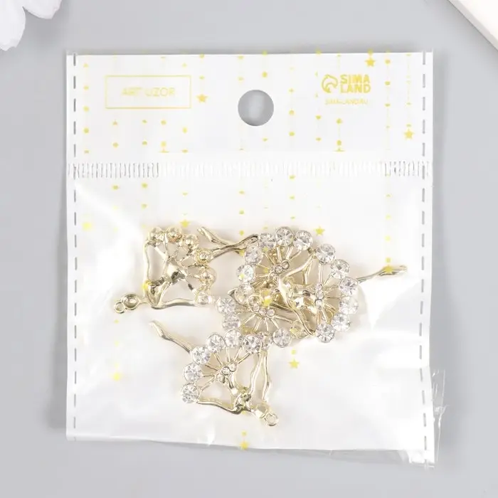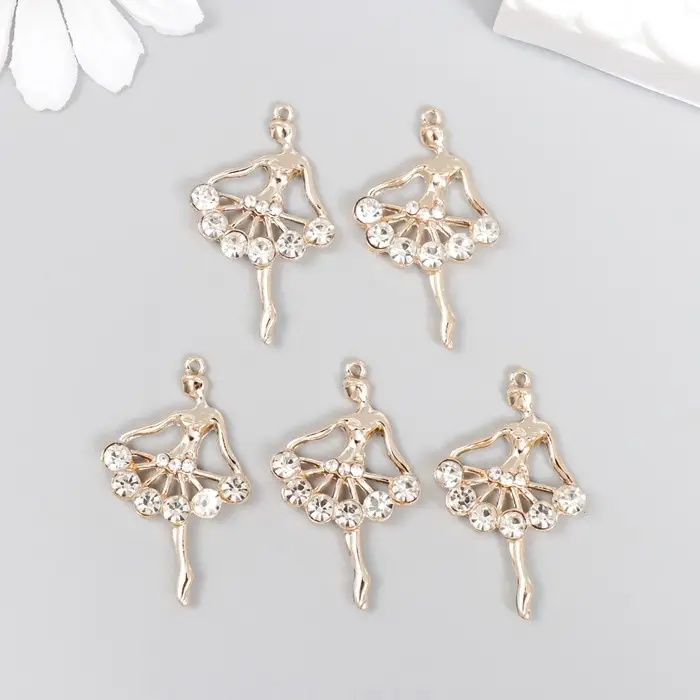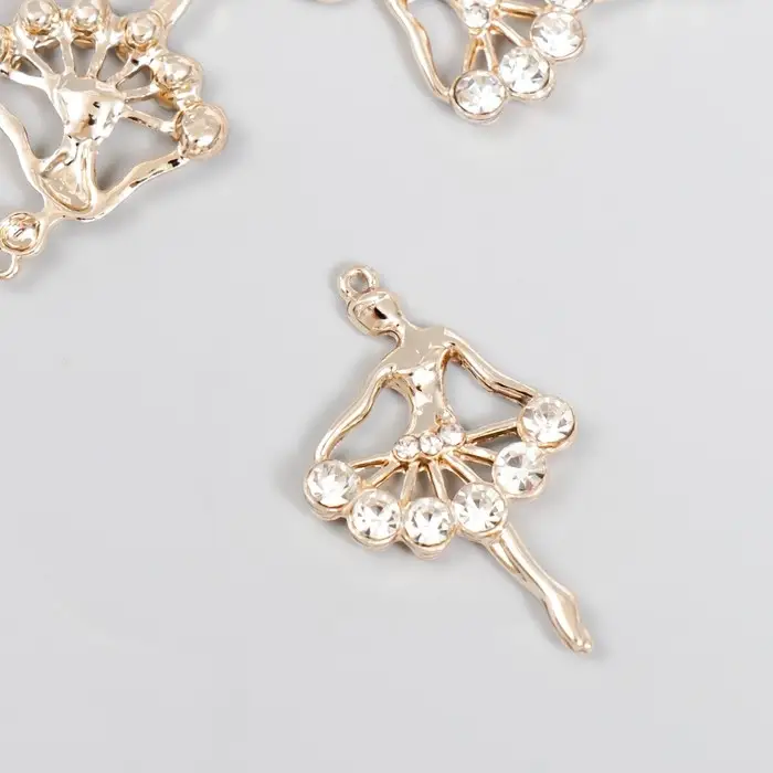 Декор для творчества металл, стразы "Балерина" золото 3,4х2,2 см