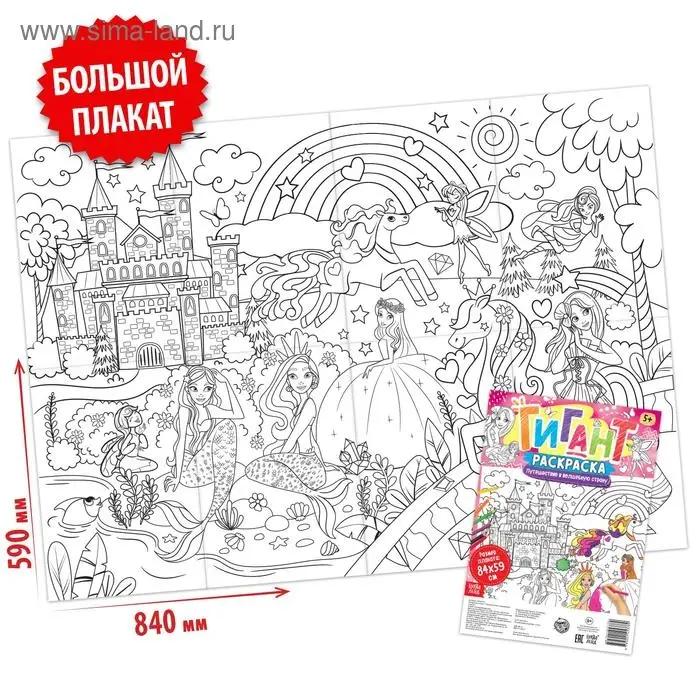 Раскраска - гигант для девочек «Путешествие в волшебную страну», 59 × 84 см