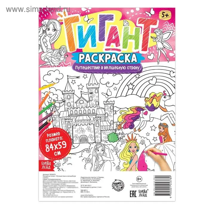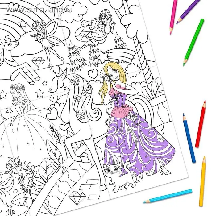 Раскраска гигант «Путешествие в волшебную страну» — это отличная возможность для юных леди весело провести время, развивая моторику и фантазию.