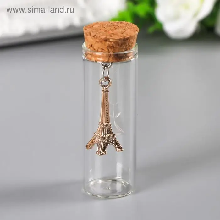 Декор для творчества стекло "Бутылочка с пробкой - Эйфелева башня" 6х2х2 см