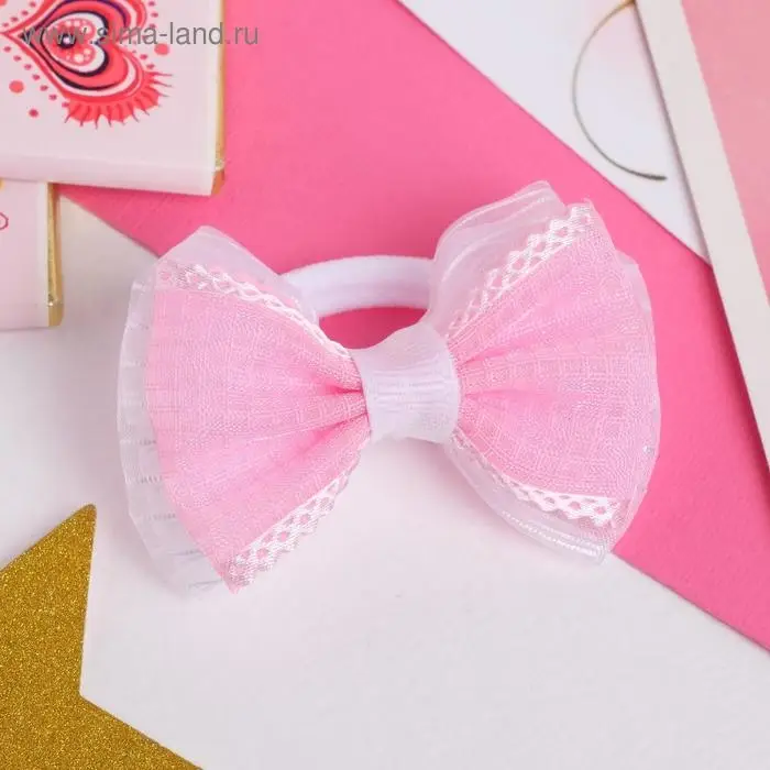 Резинка для волос «Аленушка», клеточка, 6.5 см, розово-белая