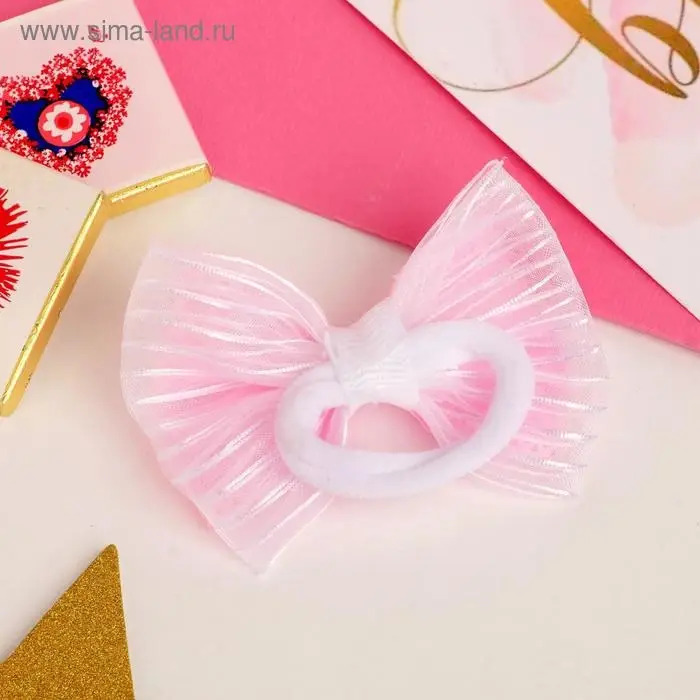 Бант для волос на резинке «Школьница», полосатик роза, d=9 см, белый