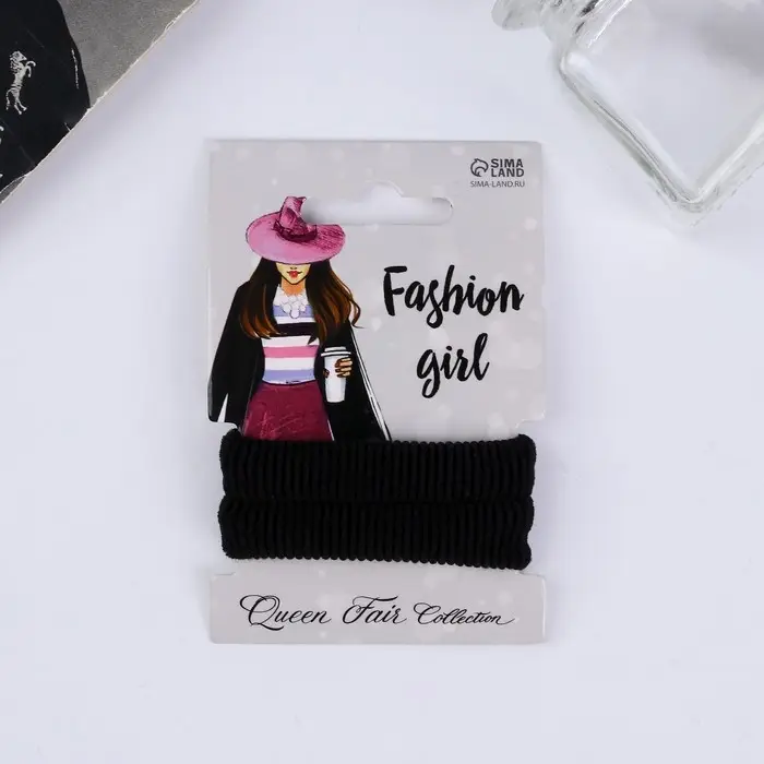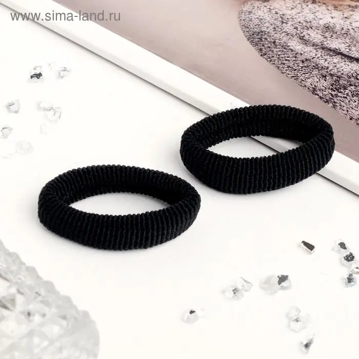 Резинка для волос "Стильная" (набор 2 шт) 5,5 см, чёрный