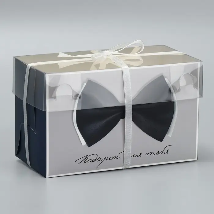 Коробка для 4 капкейка с прозрачной крышкой, "Мужской дляарок", 16 × 16 × 10 см, кондитерская упаковка