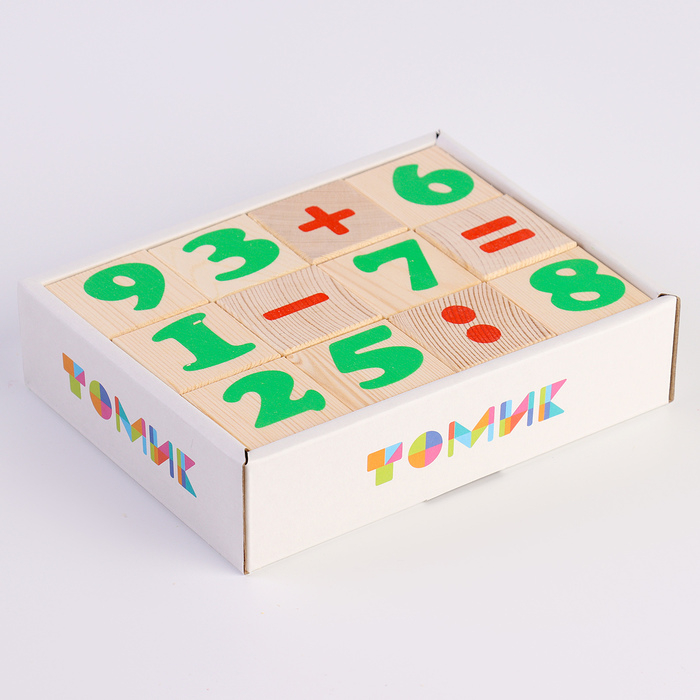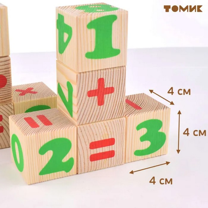 Деревянные кубики «Цифры» 12 элементов: 4 × 4 см, Томик