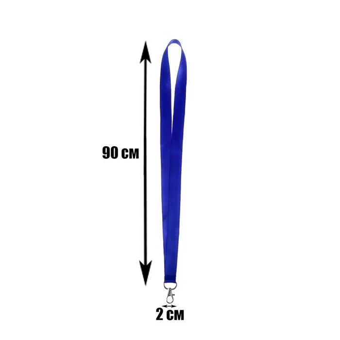 Лента для бейджа ширина-20 мм, длина-90 см с металлическим карабином, синяя
