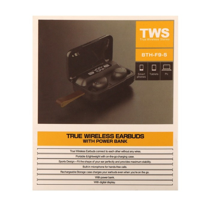 Наушники F9-5 VBT 1.28, беспроводные, вакуумные, водонепроницаемые, BT 5.0, 800 мАч, черные