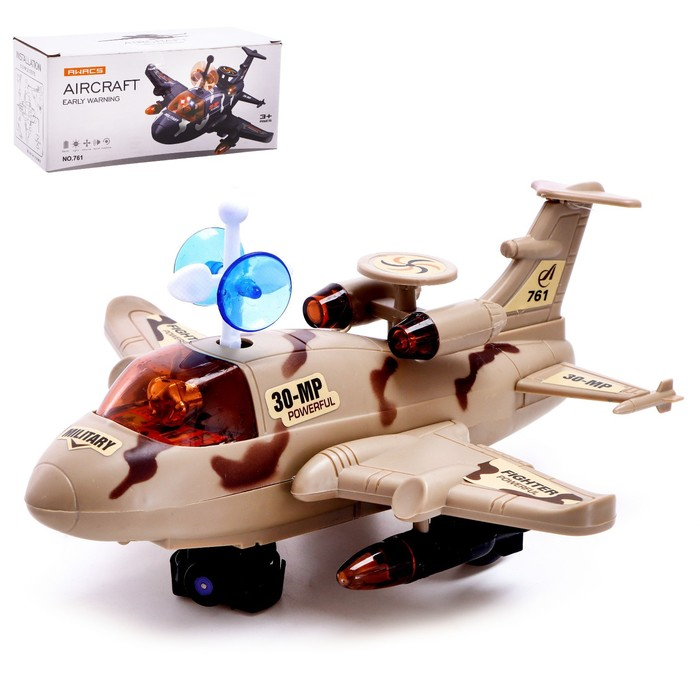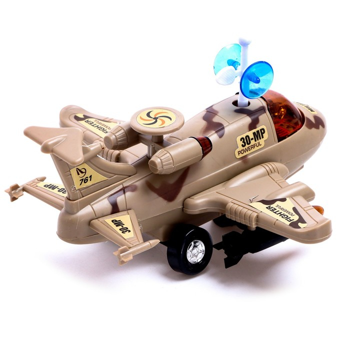 Самолет «Разведчик», свет и звук, работает от батареек, цвет коричневый