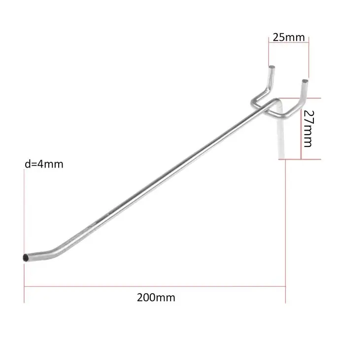 Одинарный крючок для металлической перфорированной панели диаметром 4 мм и длиной 20 см — это прочный и стильный аксессуар для хранения и демонстрации товаров. Хромированное покрытие придает крючку элегантный вид, который гармонично впишется в торговое пространство, мастерскую или домашний интерьер. Крючок обеспечивает надежное крепление на перфорированной панели, идеально подходит для удобного размещения инструментов, аксессуаров и товаров на витринах. Этот крючок помогает организовать пространство и поддерживать порядок, обеспечивая легкий доступ к размещенным предметам.