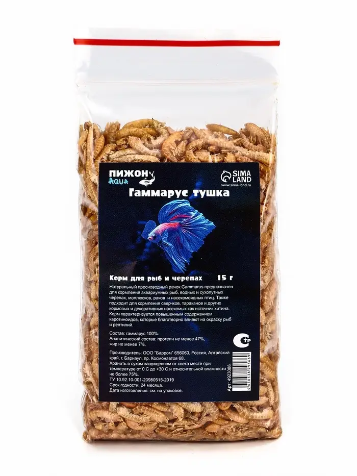 Натуральный пресноводный рачок Gammarus предназначен для кормления аквариумных рыб,