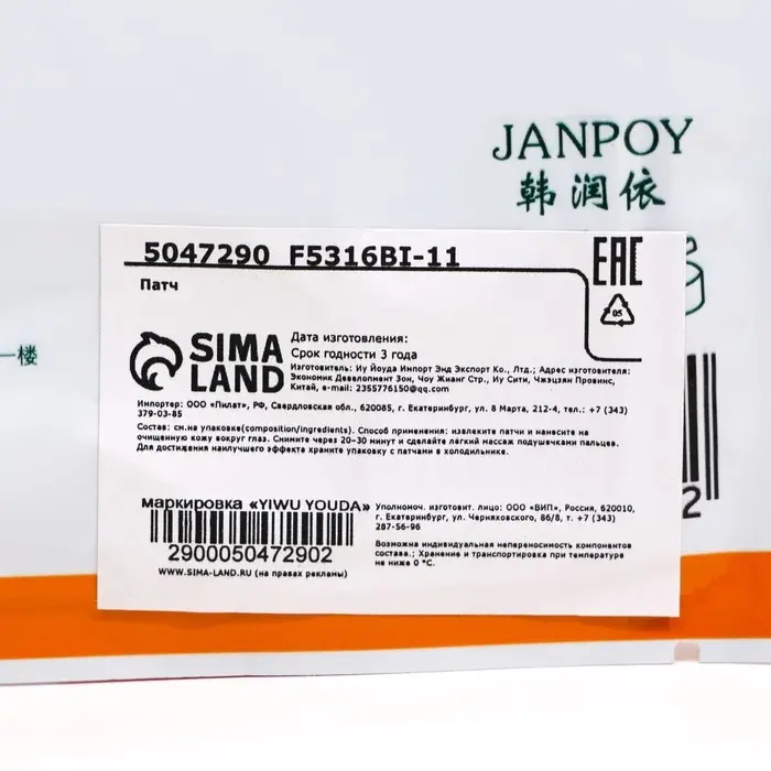 Внимание: только для наружного применения. Избегайте контакта с глазами. Если почувствуете какой-либо дискомфорт, то рекомендуется сразу же прекратить использование патчей Возможна индивидуальная непереносимость компонентов состава. Хранить в недоступном для детей месте.