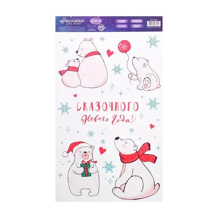 Наклейки новогодние на окна «Новогодние мишки», многоразовые, 20 х 34 см