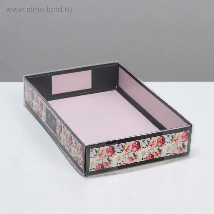 Кондитерская упаковка, коробка для макарун с пластиковой крышкой, «Люби», 18 х 12 х 3.5 см