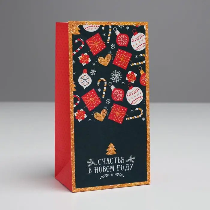 Пакет без ручек «Счастья в Новом Году», 10 х 19.3 х 7 см