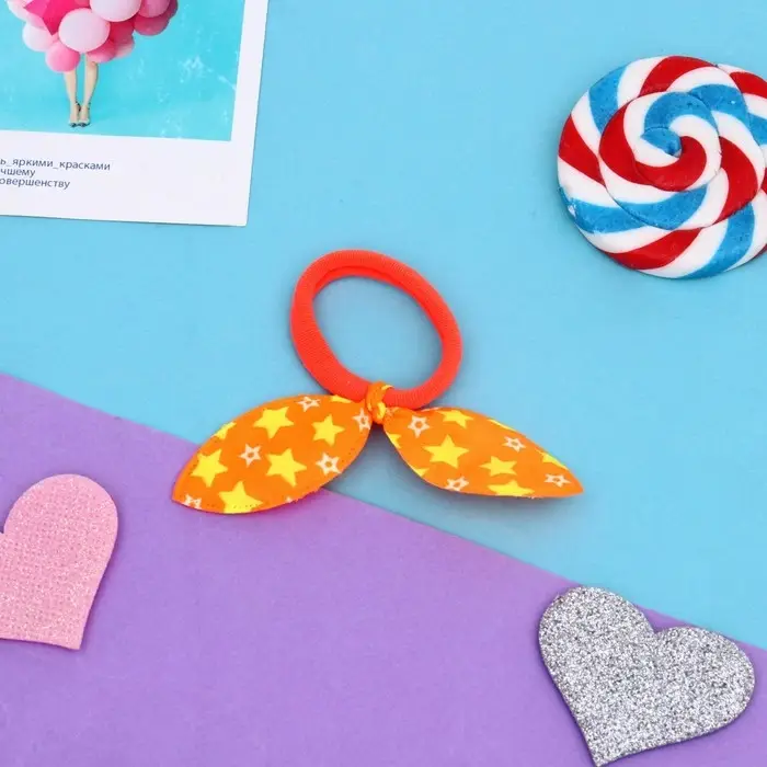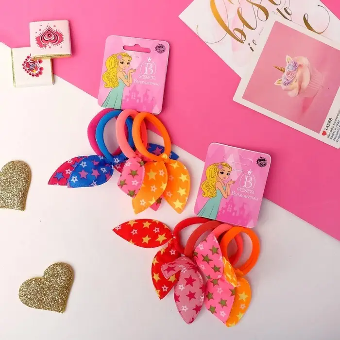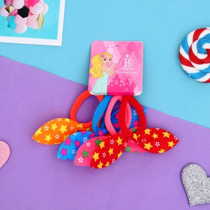 Резинка для волос "Весёлые ушки" (набор 4 шт) звёзды, 4 см, микс