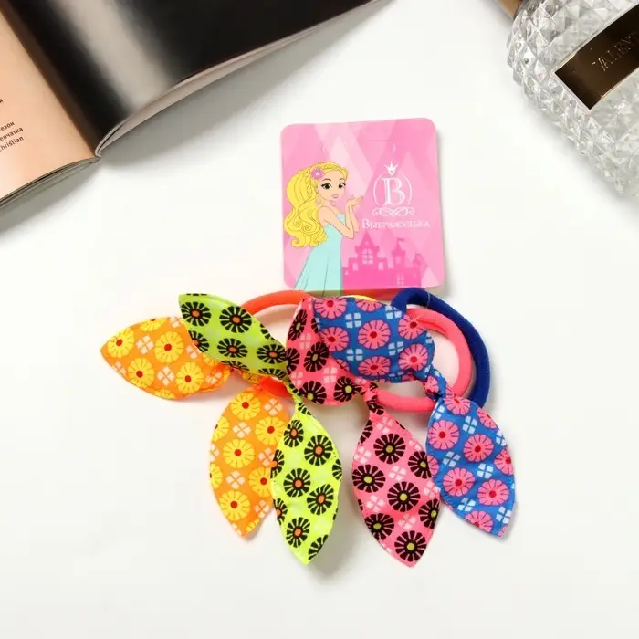 Резинка для волос "Весёлые ушки" (набор 4 шт) ромашки, 4 см, микс