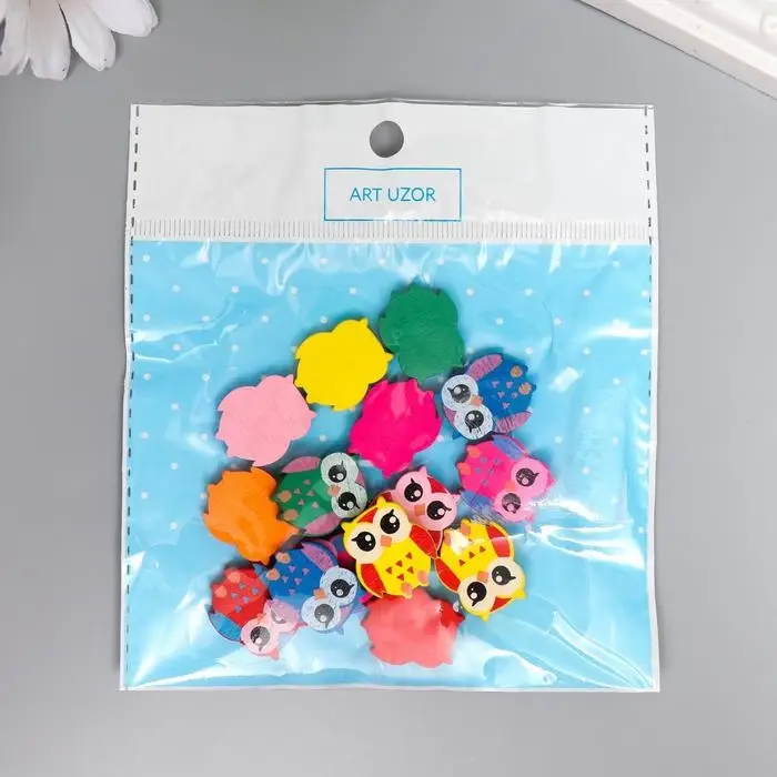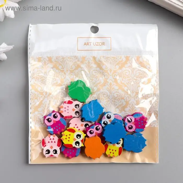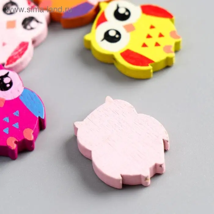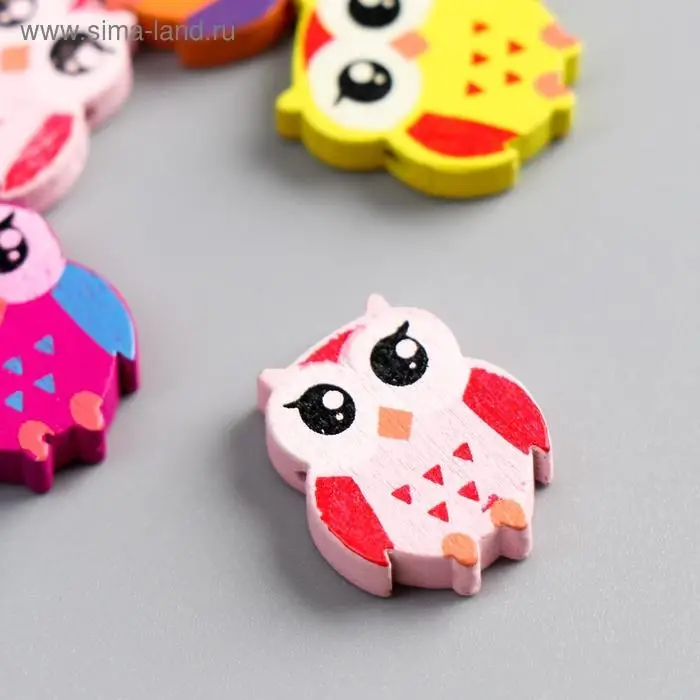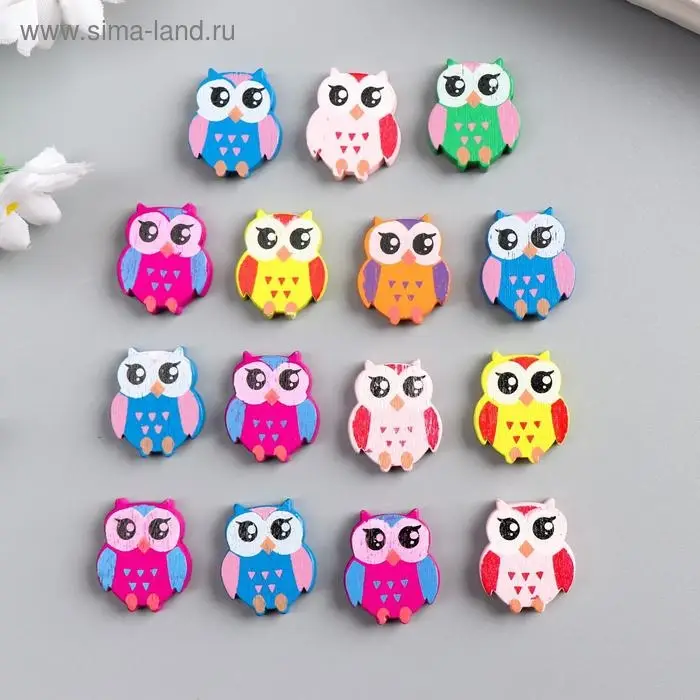 Бусины для творчества дерево "Яркие совы" набор 15 шт 2,1х1,8х0,5 см