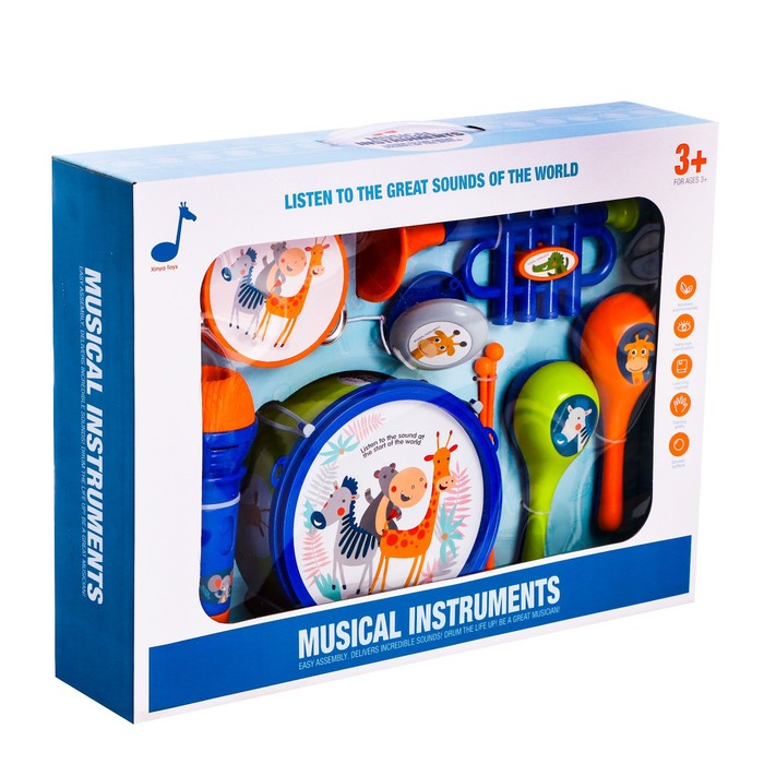 Набор музыкальных инструментов развивает воображение, музыкальный слух, чувство ритма и мелкую моторику рук в раннем возрасте.