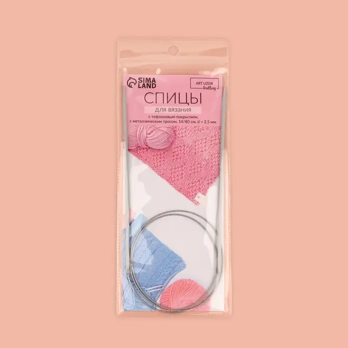Спицы круговые, для вязания, с тефлоновым покрытием, с металлическим тросом, d=2.5 мм, 14/80 см