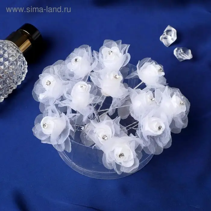 Шпилька для волос «Нежная розочка», 3×6.5 см, белая