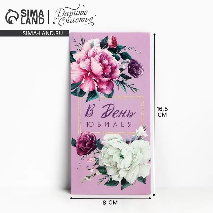 Конверт для денег «В День Юбилея», цветы, 16,5 х 8см