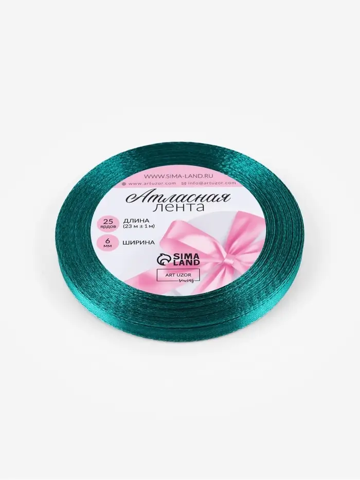 Лента атласная, 6 мм, 23±1 м, зелёная №126