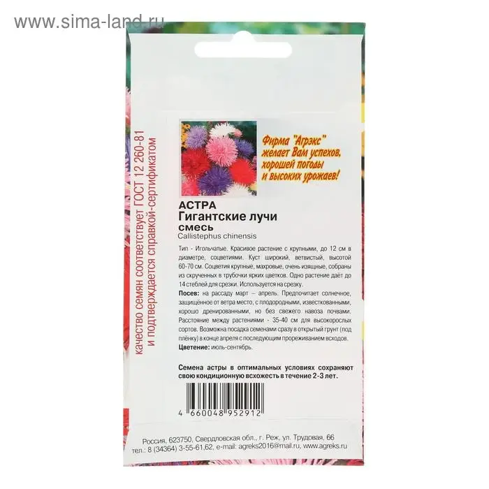 Семена цветов однолетние Астра Гигантские лучи Смесь 0,2