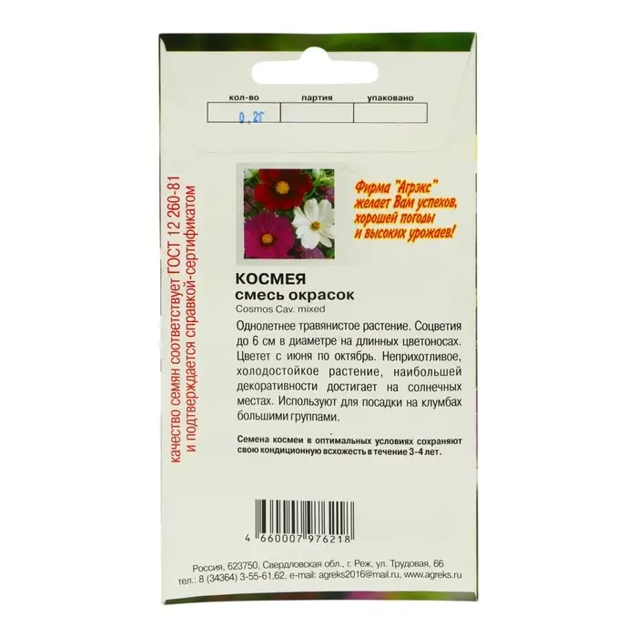 Семена цветов однолетние Космея смесь 0,2
