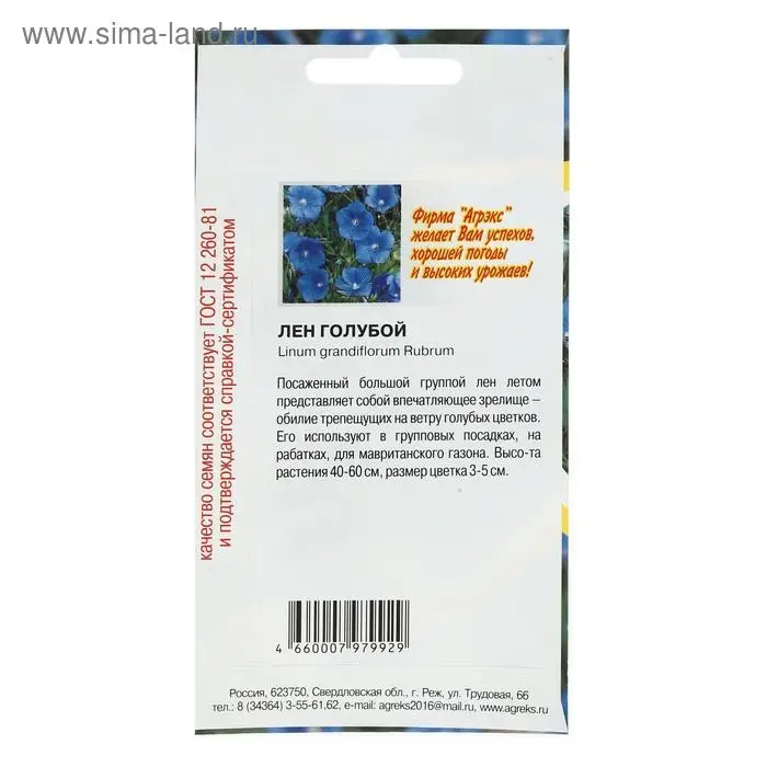 Семена цветов однолетние Лен Красный 0,2 гр.