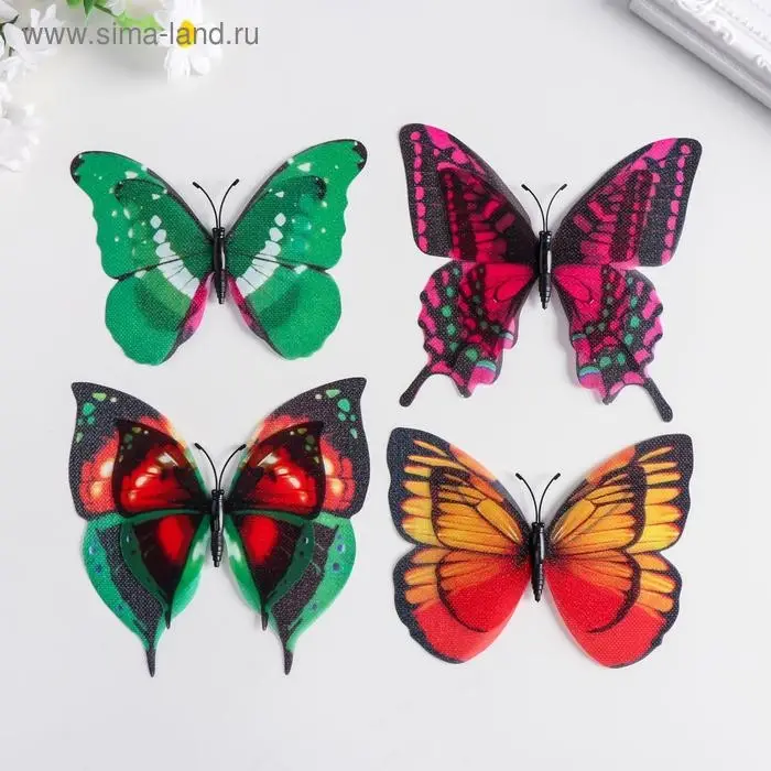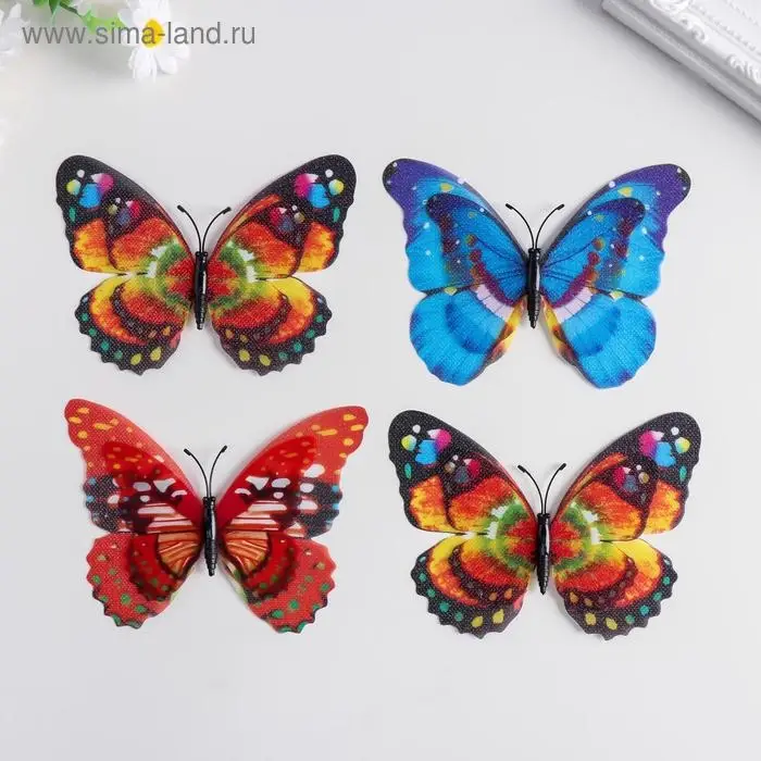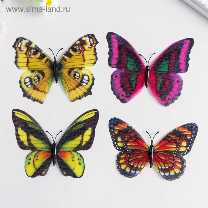 Магнит пластик под ткань "Бабочки двойные крылья, блеск" МИКС 12х9,5 см