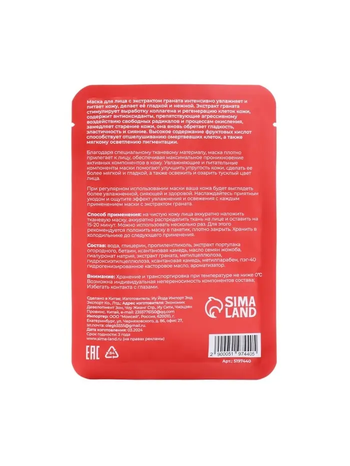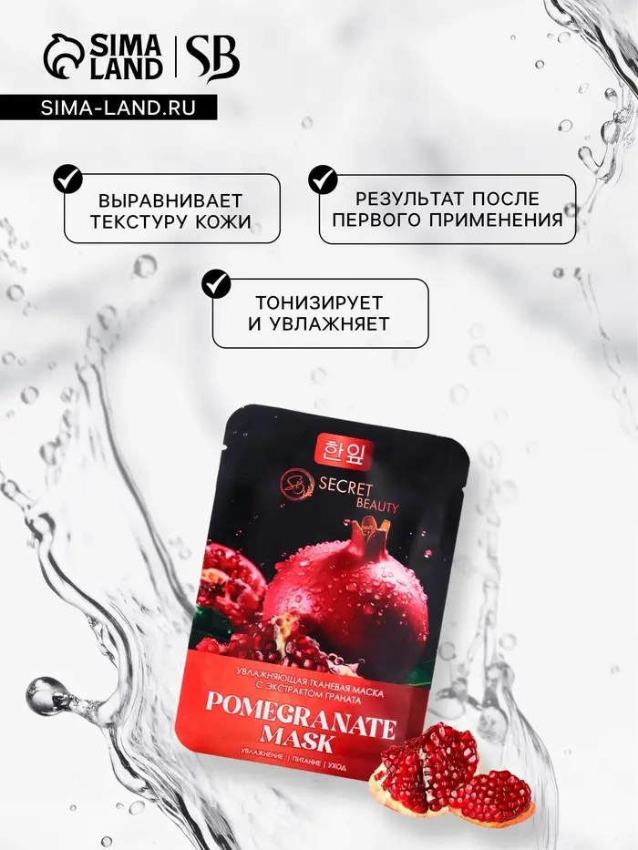 Маска тканевая для лица c экстрактом граната, увлажняющая