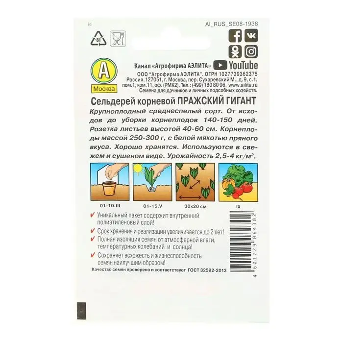 Семена Сельдерей корневой "Пражский гигант" "Лидер", 0,5 г ,