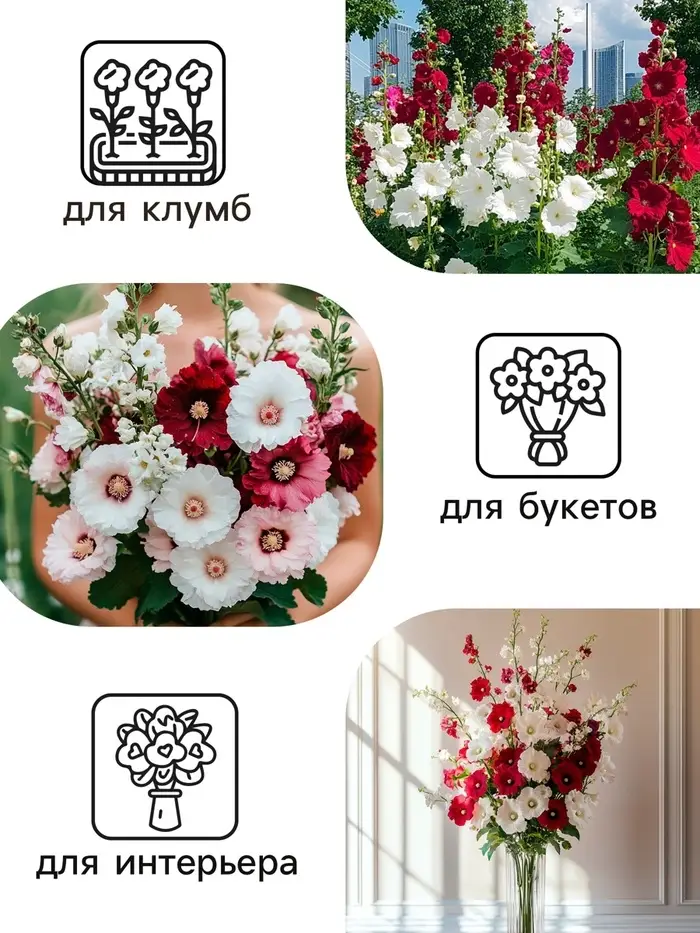 Семена Цветов шток-роза "Цветочное диско", смесь сортов, 0,3 г