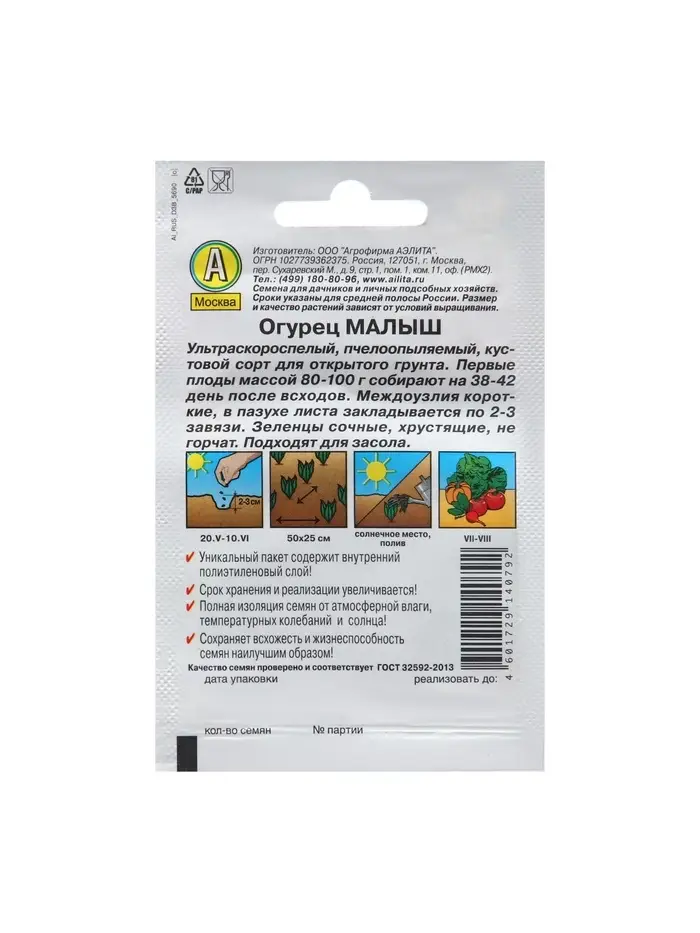 Семена Огурец "Малыш" "Лидер", 10 шт,