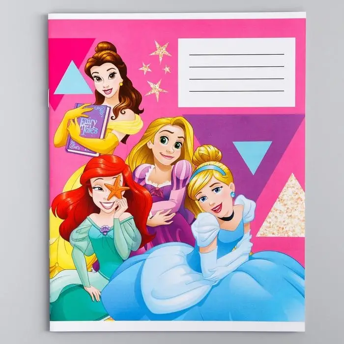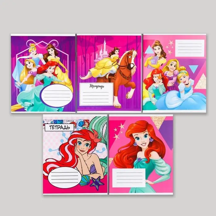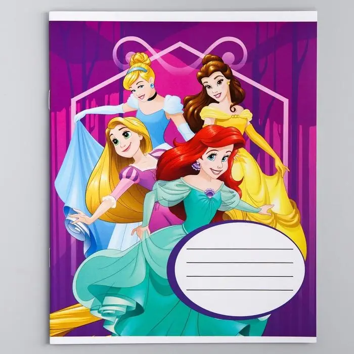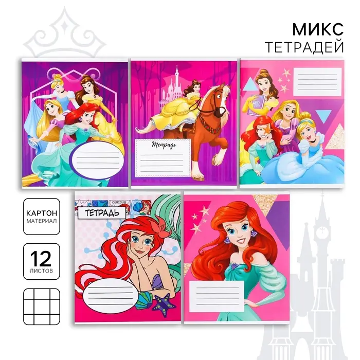 Тетрадь в клетку 12 листов, 5 видов МИКС, обложка мелованный картон, «Принцессы»