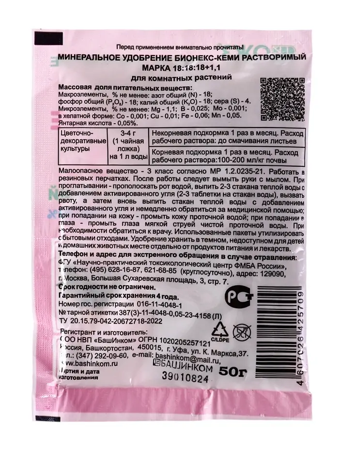 Бионекс-Кеми восполняет недостаток макро- и микроэлементов у комнатных растений и предотвращает связанные с ним хлорозы, повышает декоративность, усиливает иммунитет.