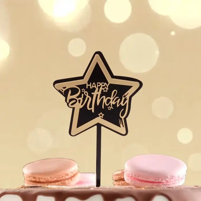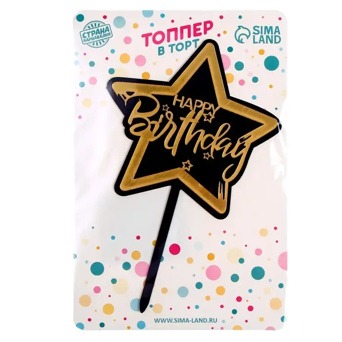 Топпер "Happy Birthday", круг, золото, Дарим Красиво