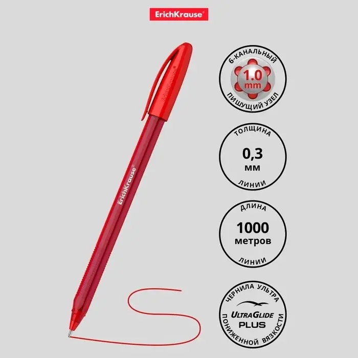 Ручка шариковая ErichKrause U-108 Original Stick, узел 1.0 мм, чернила красные, супермягкое письмо, длина линии письма 1000 метров
