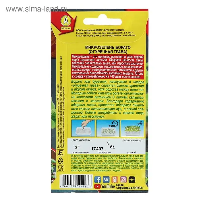 Семена Микрозелень "Бораго" (огуречная трава), 3г,