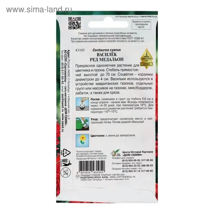Семена цветов Василёк "Ред Медальон", 50 шт