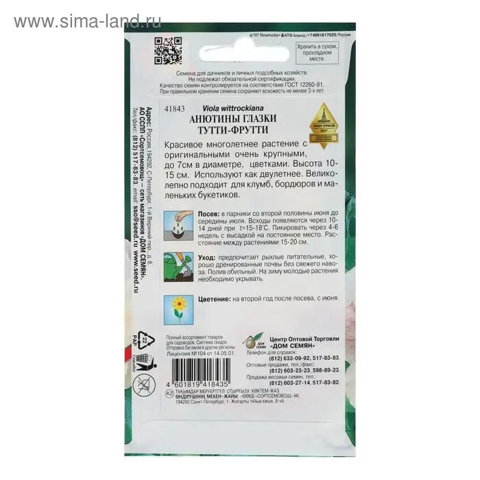 Семена цветов Анютины глазки "Тутти Фрутти", 20 шт.